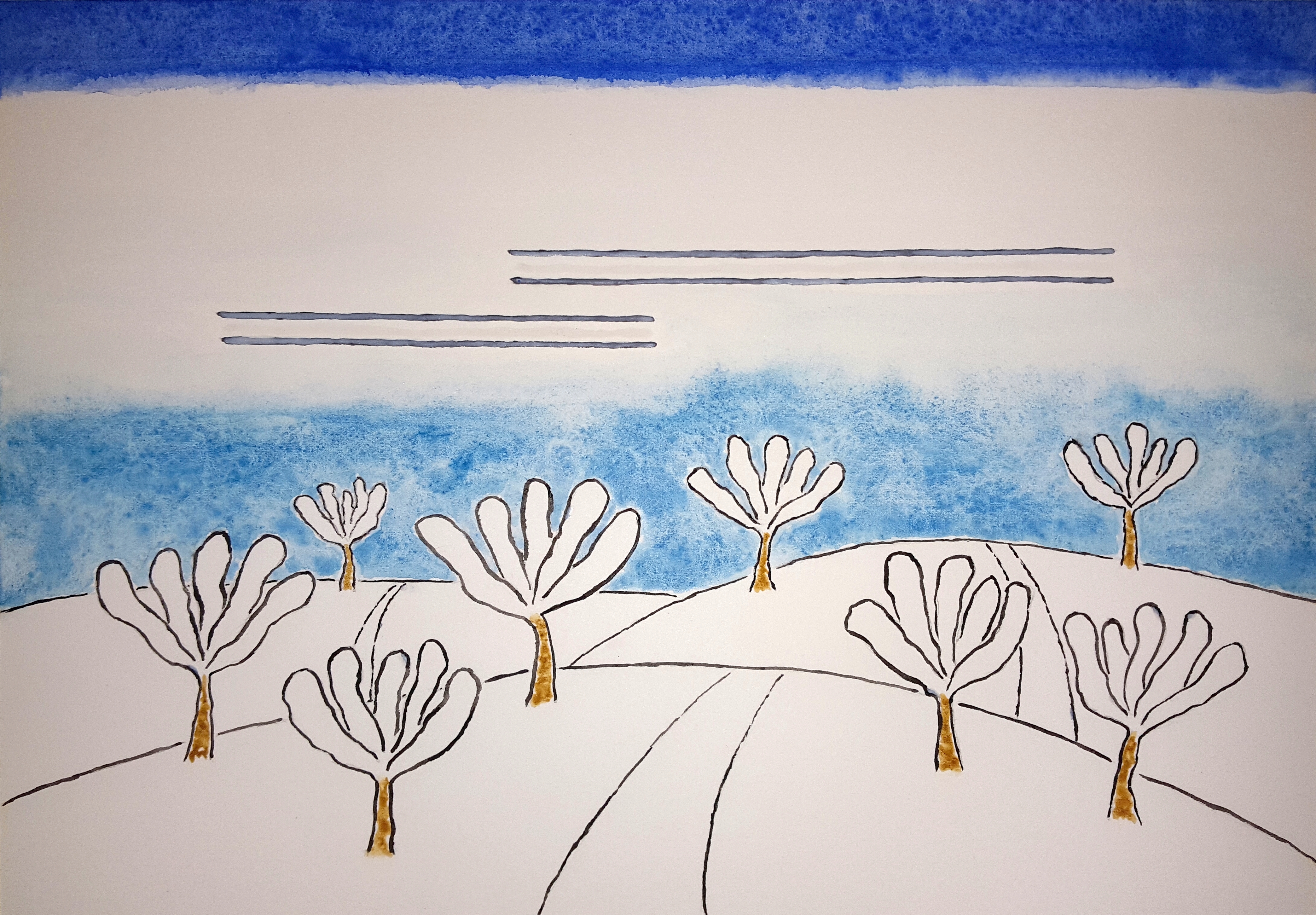 Watercolor of the day ~ Snowy Orchard